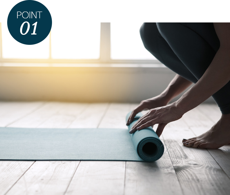 ヨガを行うには、マットとその1枚分の空間が必要になります。しかし、他に何も用意しなくても、ヨガをしようと思えばいつでもできる、大変気軽で誰でも取り組めるものです。