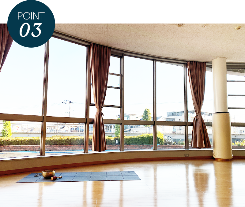 横浜市営地下鉄・日吉本町駅から徒歩0分の「いきいき会館」にてクラスを開催。窓が大きく、開放感ある清潔なスタジオでのヨガは、気持ち良さが格別です。